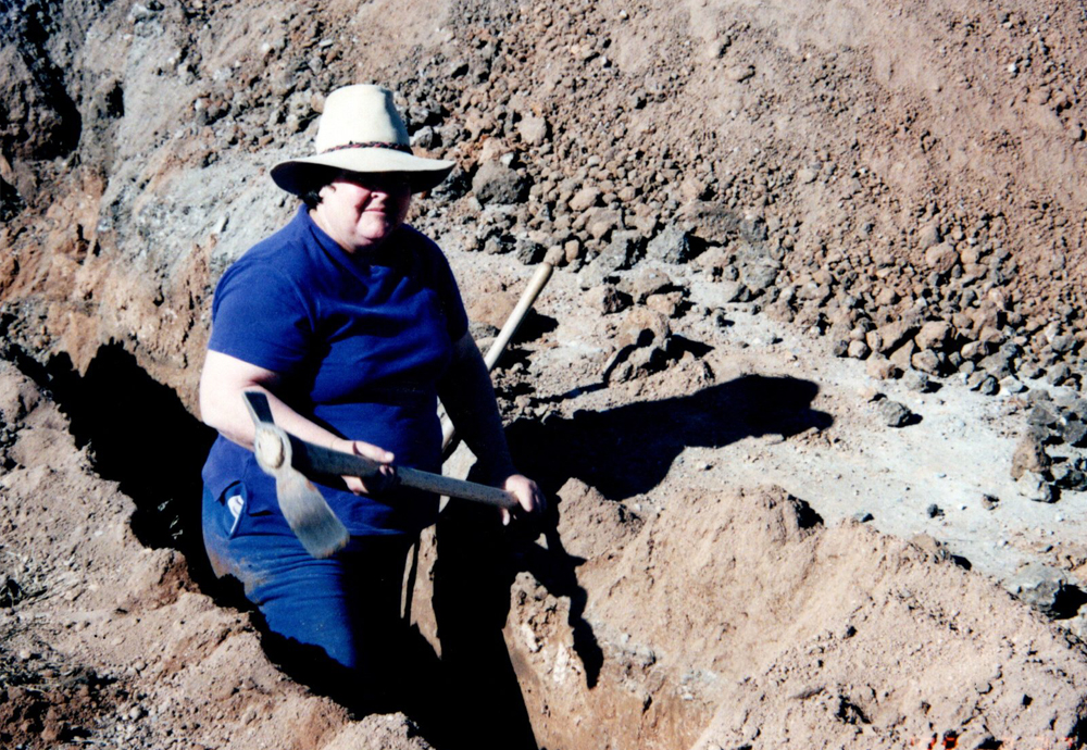 Me digging a water line. My well went dry so a friend with a backhoe, a son in law & I dug  trenched 1 1/2 miles of water line. 3 feet deep.