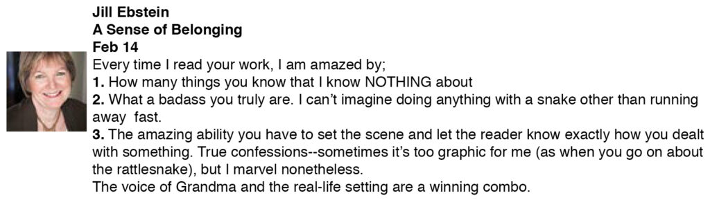 Sandra is a masterful award winning novelist. I don’t know if this is her first or anything except the novel I read. She’s taken on a tough “two worlds” story in different time periods and made it work. Her authenticity and knowledge of 19th century life as well as modern American West and ranch country people and places and things is a true pleasure to read. She’s fabulously eloquent and I hope this story finds a great home somewhere. If she self-publishes, she should do much more with her character Carolina, a strong woman who grabs your heart – wish I knew more like her.  It’s difficult to write a dual timeline novel and make it work, particularly with a first novel, but Sandra succeeds in thrilling fashion.